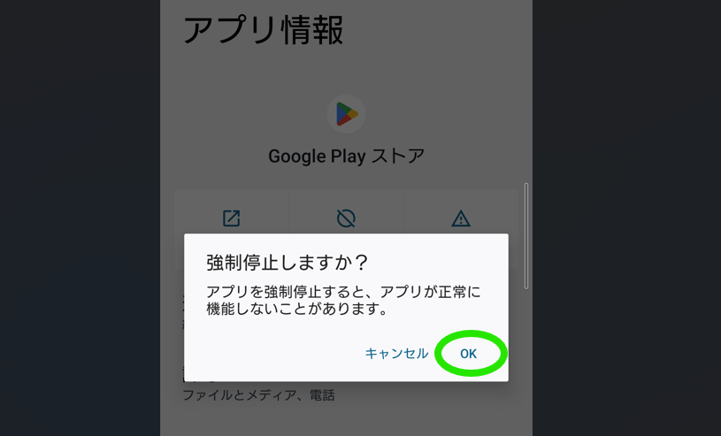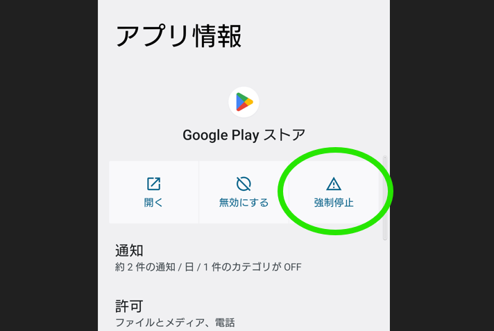 「強制停止しますか? アプリを強制停止すると、アプリが正常に機能しないことがあります」…と、まあ、なんか、Android側の問題なのに、ユーザーに責任転嫁するようなメッセージ、うーん。