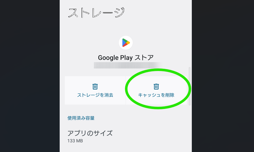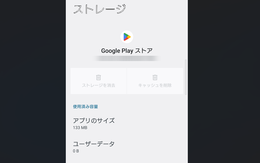 あ、「ストレージを消去」と「キャッシュを削除」、両方ともグレーアウトしました。