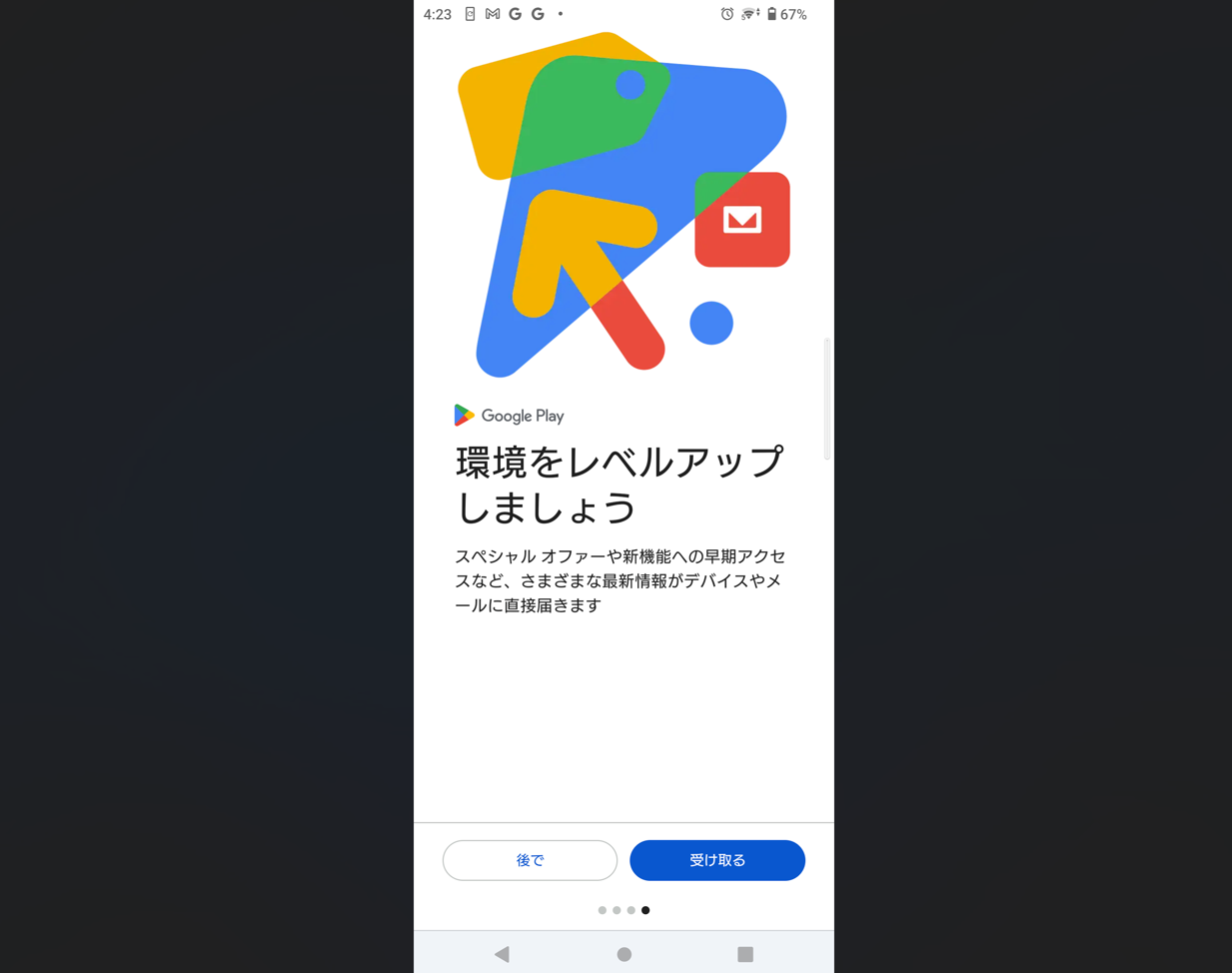 「環境をレベルアップしましょう」も、「後で」をタップします。