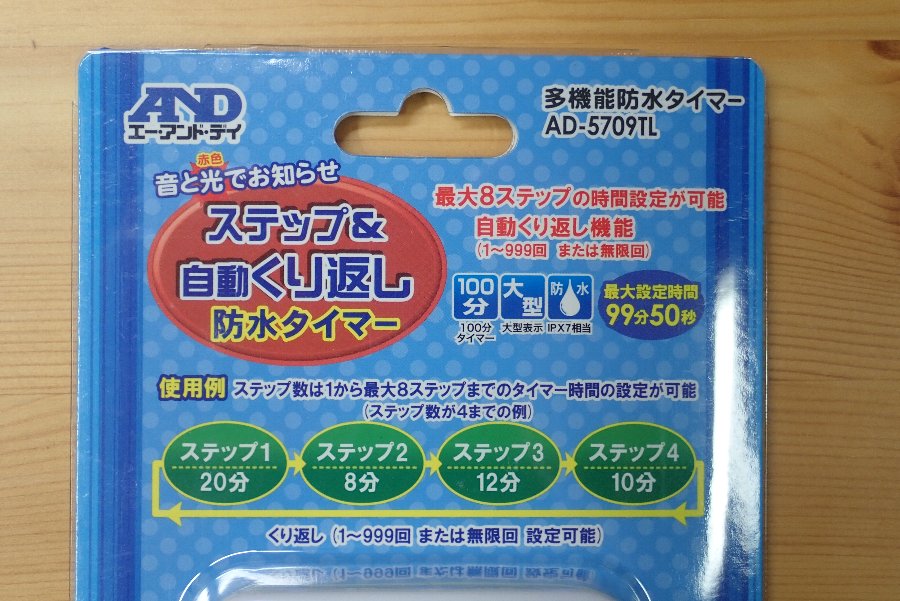 普通のタイマーと違うところは、「ステップ&自動繰り返し」ということです。普通のキッチンタイマーは、設定した時間、経過すると、ピピピッとか鳴って終了します。