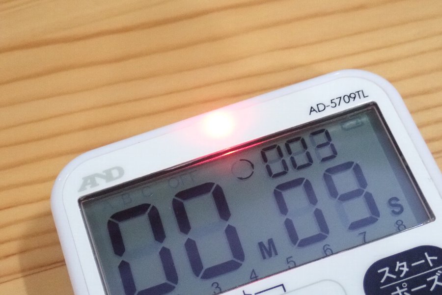 耳だけでなく、視覚にもしっかりと訴えてくれる、素敵なタイマーです。
