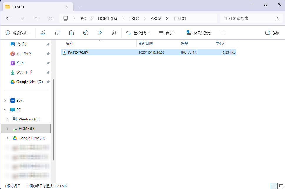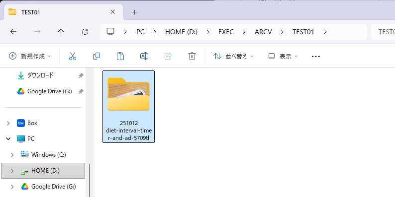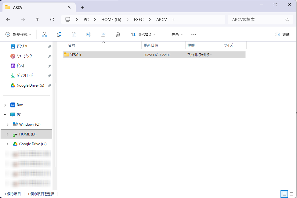 まあ、フォルダだけでは何ですので、先ほど、同期設定した「D:\EXEC\ARCV」の中に、新しいフォルダ、「TEST01」を作ってみました。