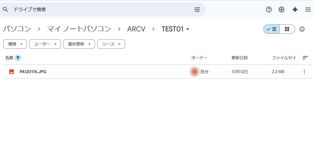 という訳で、今回、テスト用に作成した「ARCV」というフォルダだけが同期対象として設定されました。