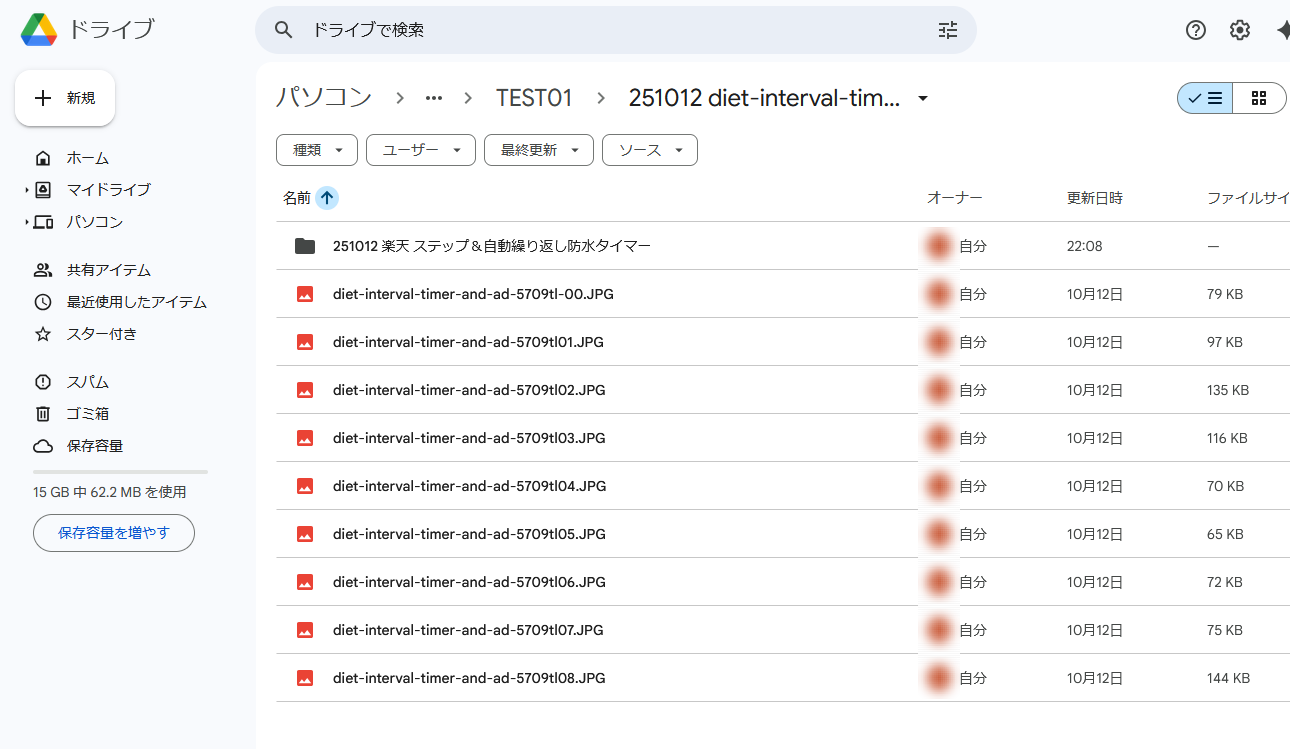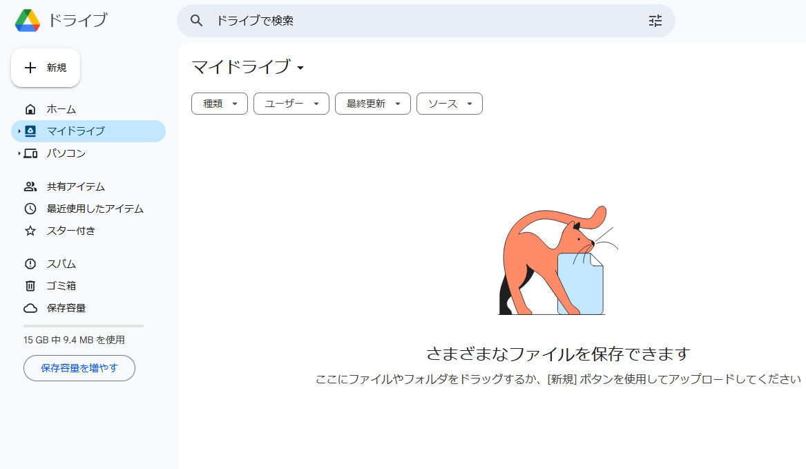 Google ドライブに、がばっとたくさんのファイルを保存してみる
