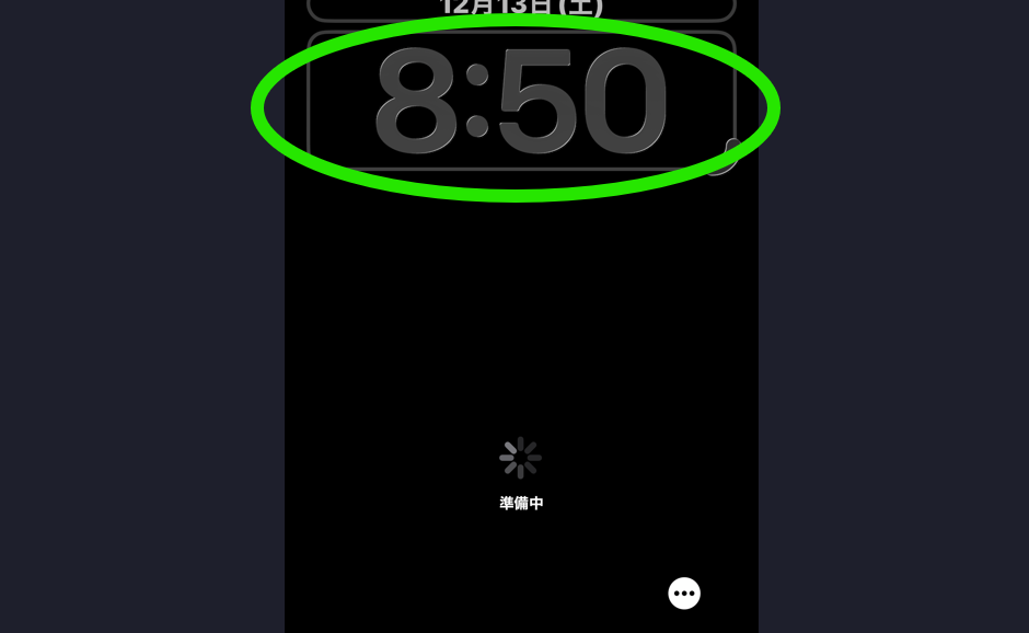 何やら「準備中」と言う表示と共に、むにょむにょ回っていますが、それは無視して、「時刻」の部分…スクショで言うと、「8:50」のところです…をタップします。