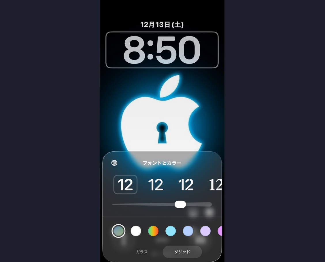 なんか、勝手にiOS26.1に更新されまして、そうしたら、なんと、待ち受け画面の時計の色が、半透明になってしまいました。そんな訳で、あれこれ調べて、さらに試行錯誤して、ようやく元通りになりました。