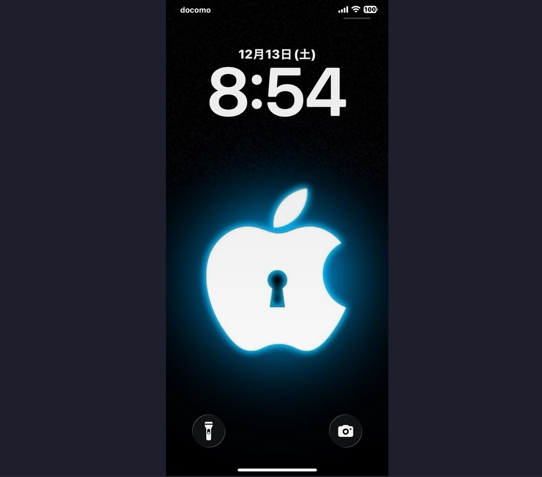 はっ! この壁紙、iPhone4s時代から、ずっと使っていました。なんか、「かじられたリンゴに鍵穴」って良くないですか?