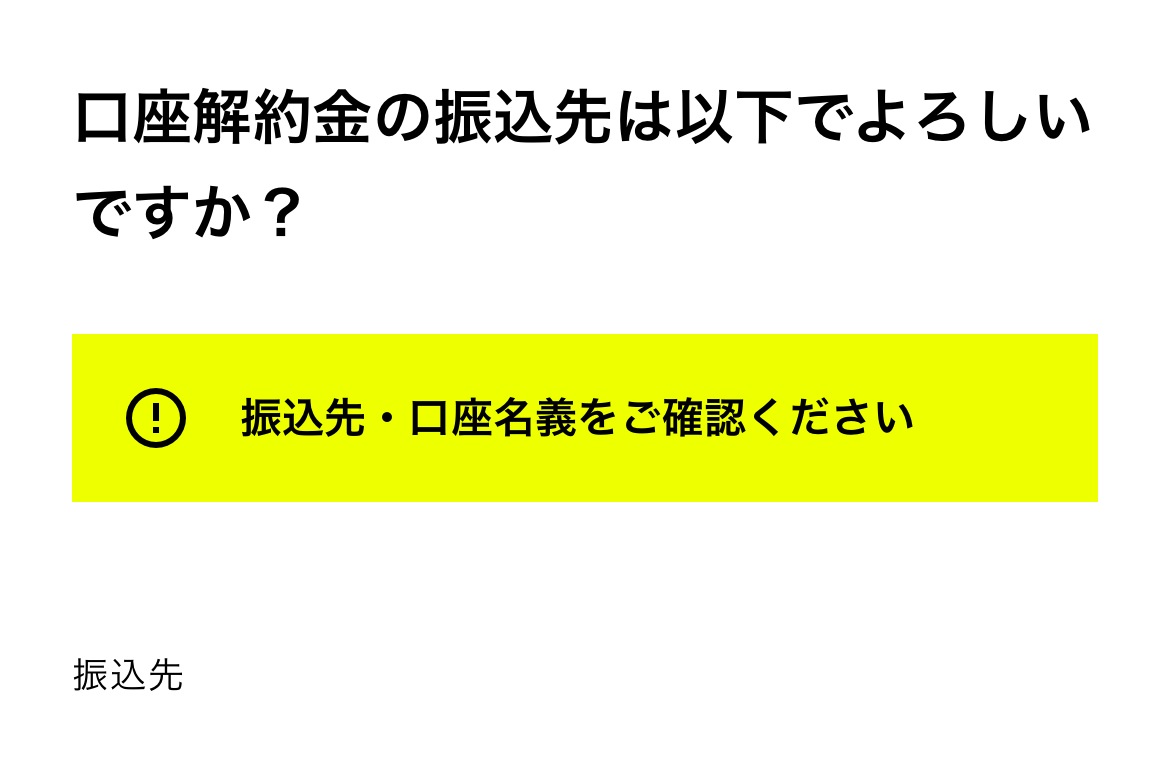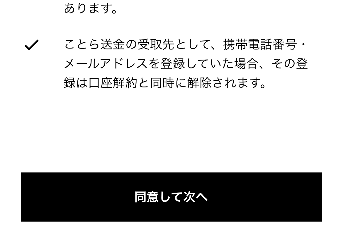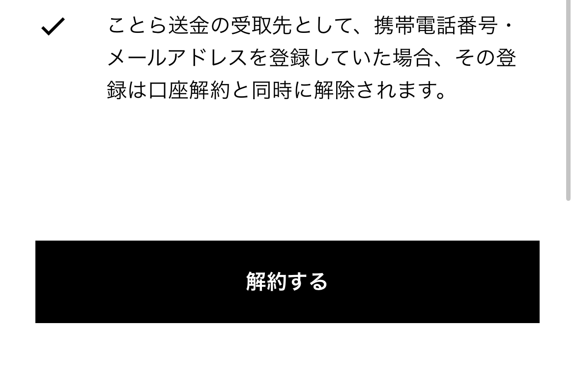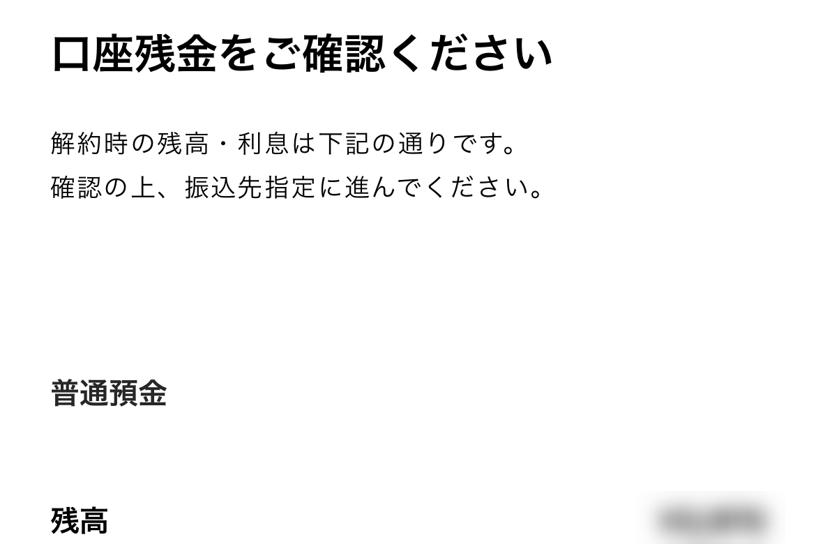 最後の最後に、「最後に、口座解約時の注意事項をご確認ください」と表示され、あれこれ丁寧に説明してくれます。ほどほどの量ってのがありがたいです。