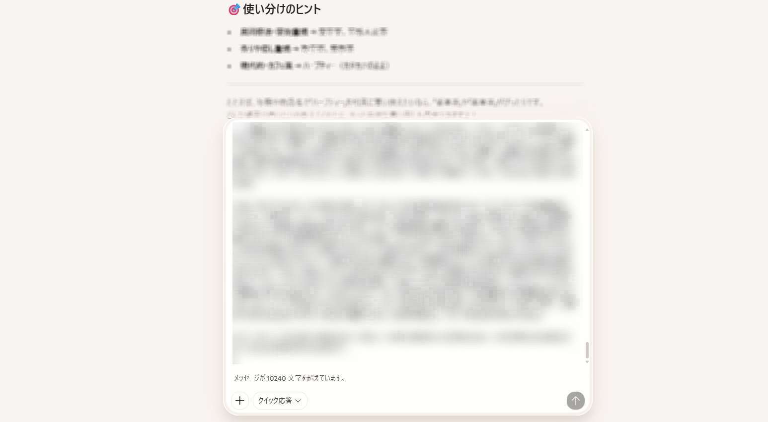 「メッセージ」というのは、確か、正確には「コンテクスト」と言ったと思いますが、コンテクスト長の最大文字数が、10,240文字となっているようです。