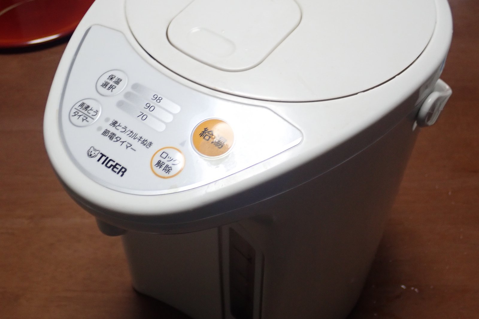 ちなみに、本記事で交換したのは両親所有の湯沸かしポットで、我が家では、ちょっとクール系の湯沸かしポットを使っています。蒸気レスで保温機能(コンセントを抜いておいても保温)が付いている、かっちょいい湯沸かしポットです。