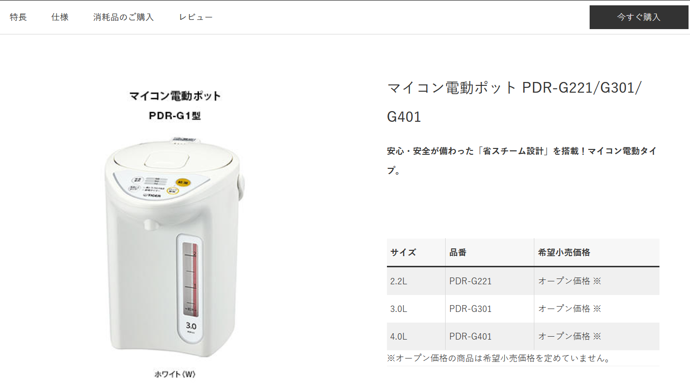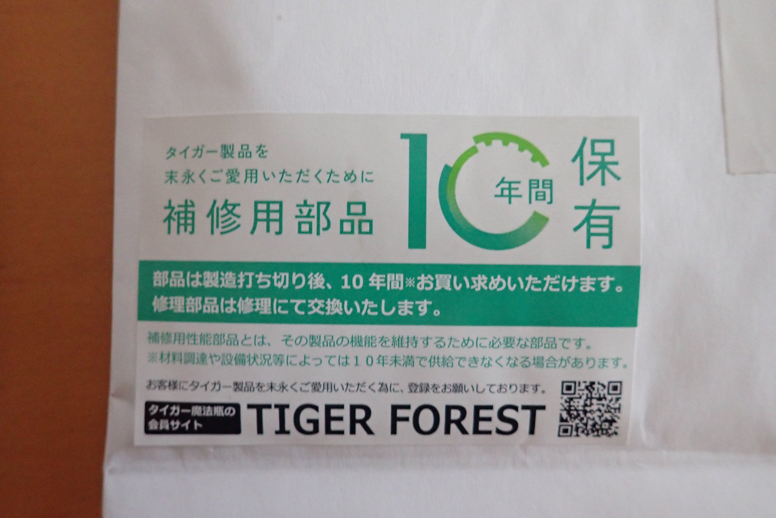 「タイガー製品を末永くご愛用いただくために 補修用部品10年間保有」ってのがうれしいですね!