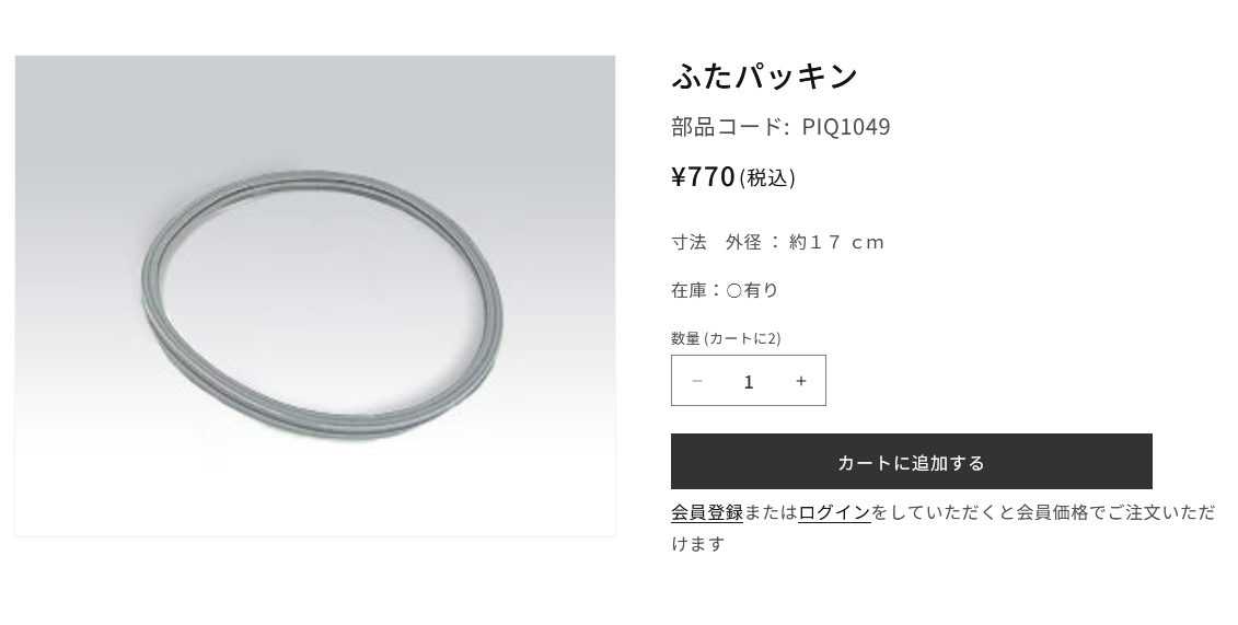 本記事公開時点で、ふたパッキンは770円、送料は330円でした。