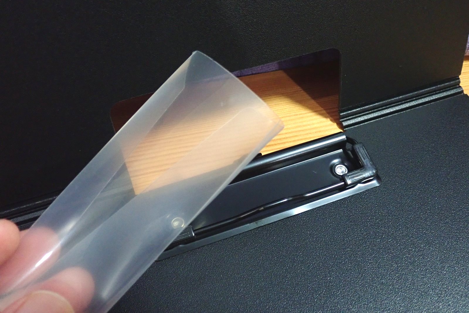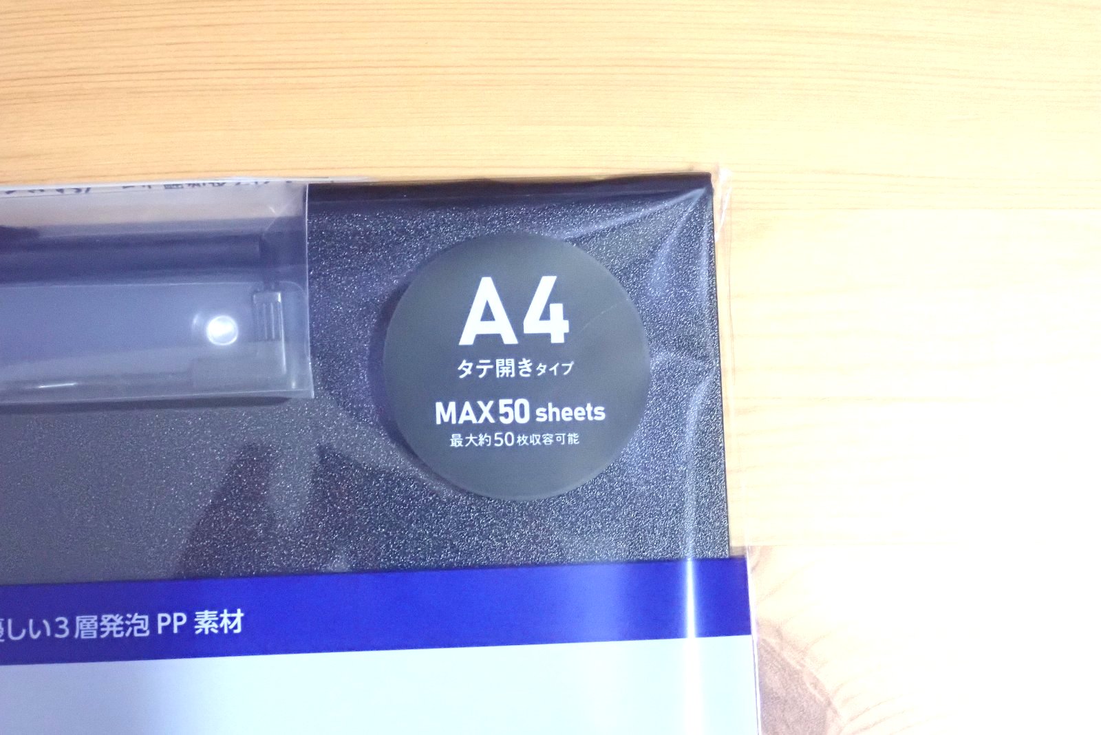 紙は最大50枚挟めるとのことです。実はパッケージ開封後、50枚以上、挟んでみたのですが、70枚ぐらいまではいけます(普通のよくあるコピー用紙)。