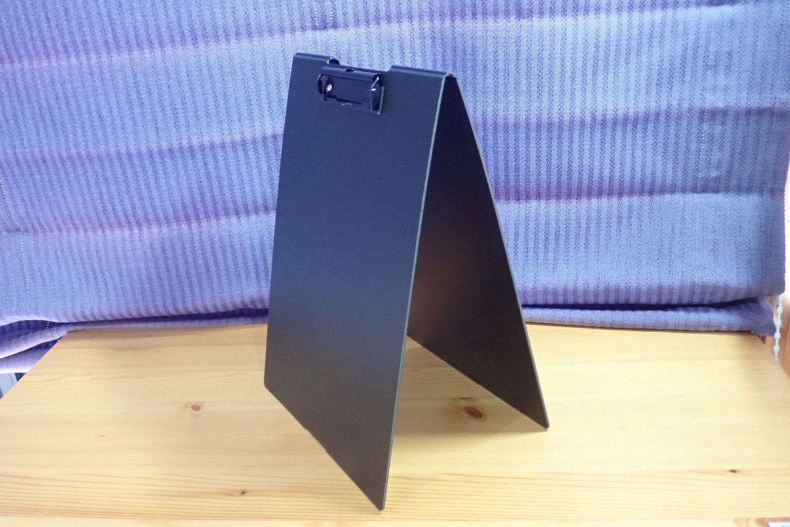 うむ、なかなかの剛性、これならクリップボードとしてだけでなく、メモボードとして、立ったままメモを使うのも快適です。