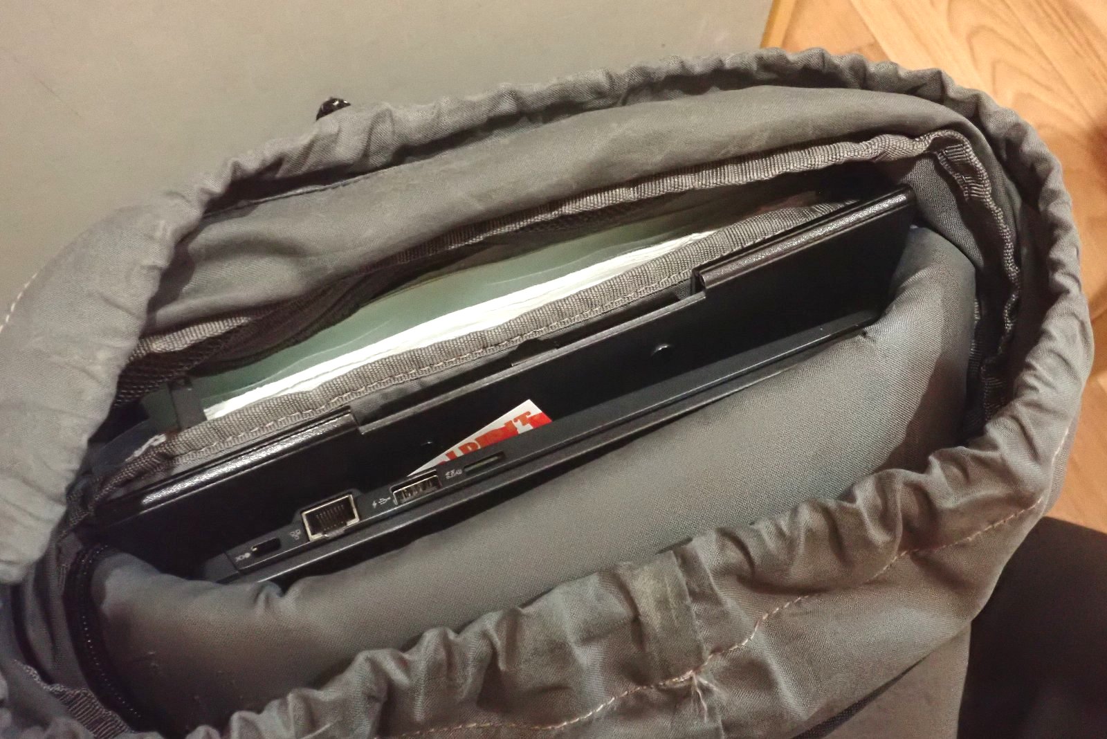 紙を挟んだまま、そのままPCポケット付きバッグに収納