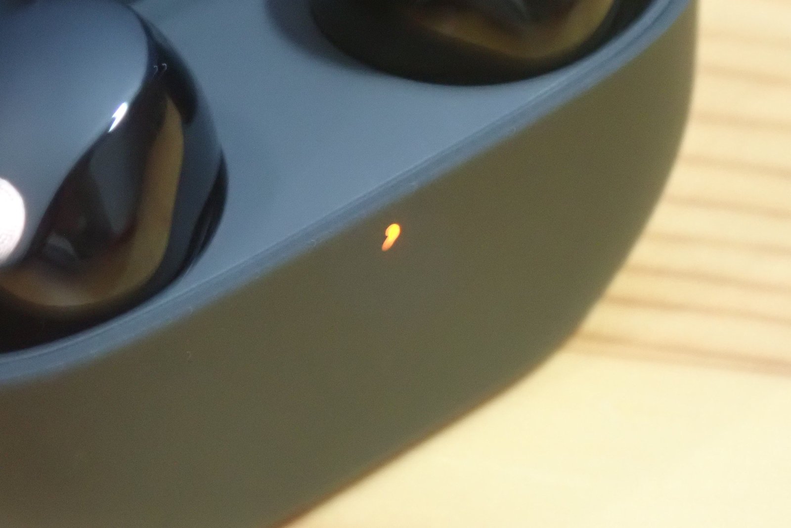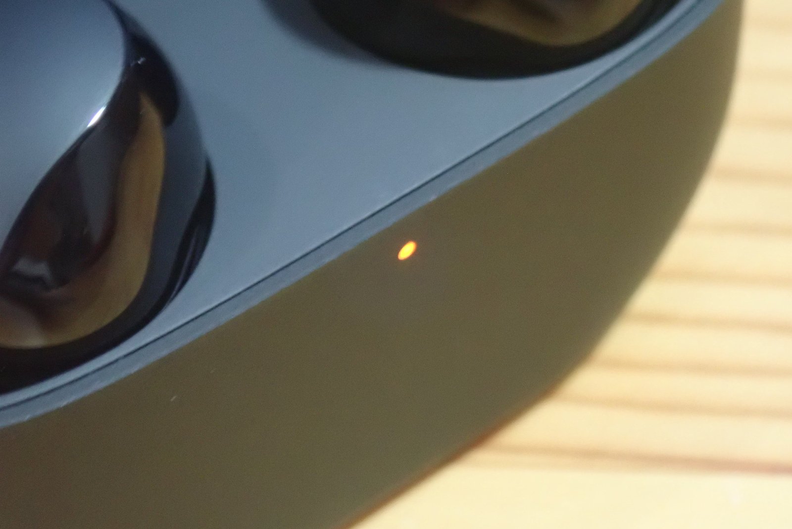 もう一回、充電ケースを開いて見ると、やっぱりオレンジ色に点灯しました。