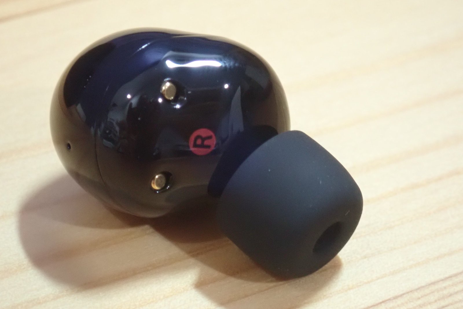 こちらは左側のイヤホンです。突起があり、指で触っただけで左右を知ることができます。こういう気遣い、すごいですね!