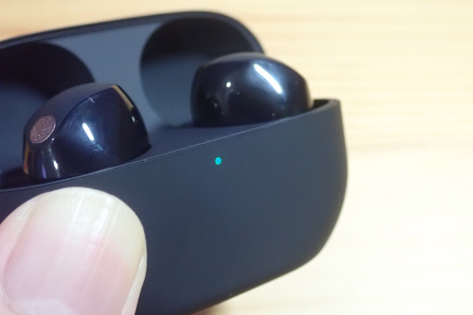 SONY WF-1000XM5にとっては、3台目のペアリングになりますので、iPhoneの時と同じくSONY WF-1000XM5のケース後ろ(USB Type-Cコネクタの左側)にある「ペアリング/リセット/初期化」ボタンを5秒、長押しします。