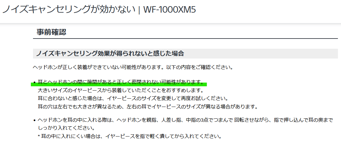 というわけで、SONY WF-1000XM5のイヤホン部分を押し込んでみたり、ちょっとひねりを加えてみたのですが、密閉度は相変わらずダメダメでした。