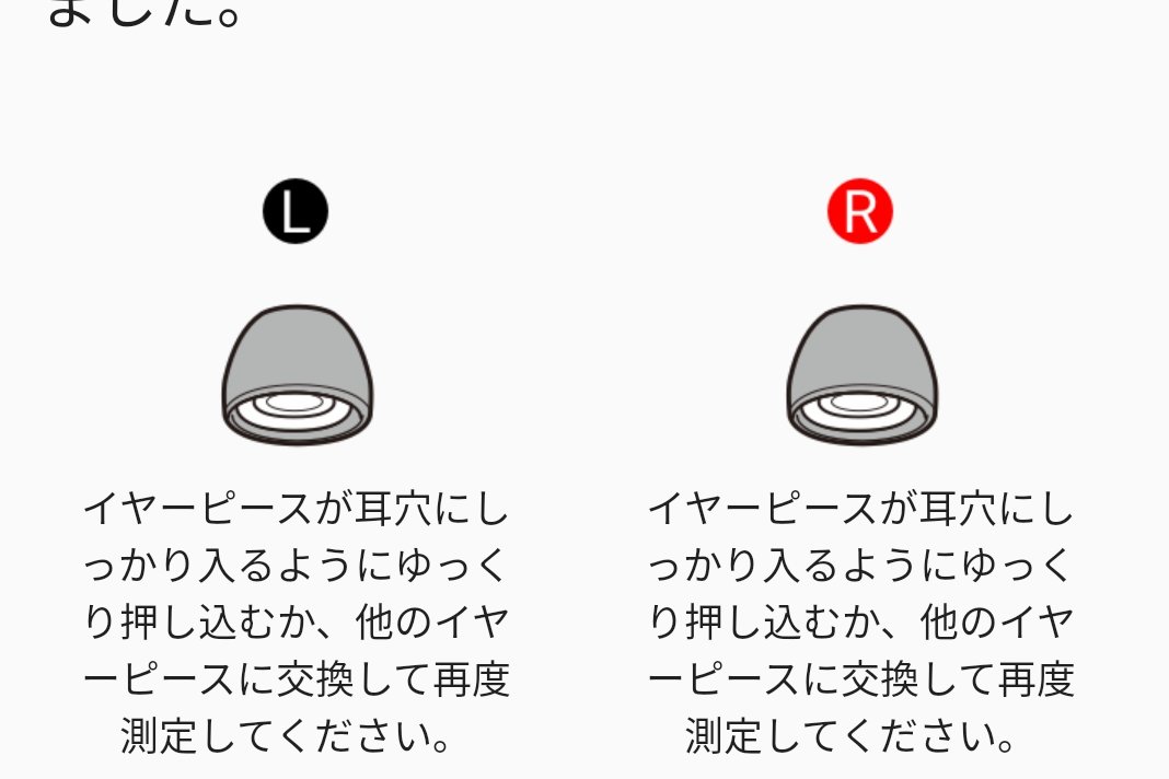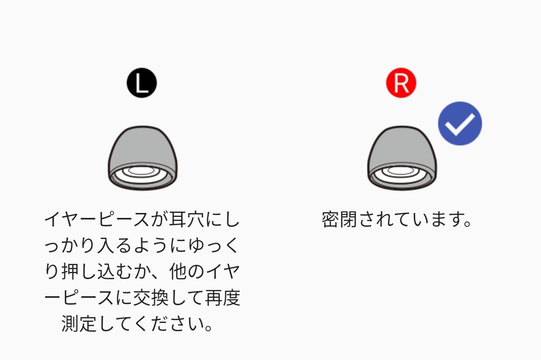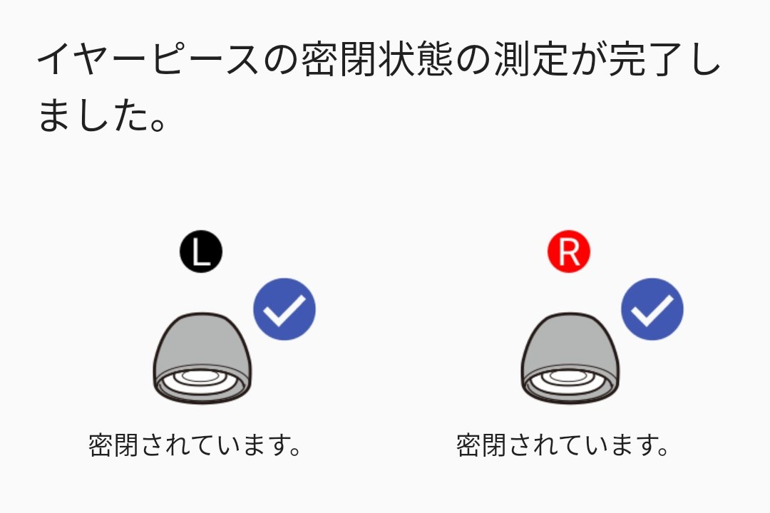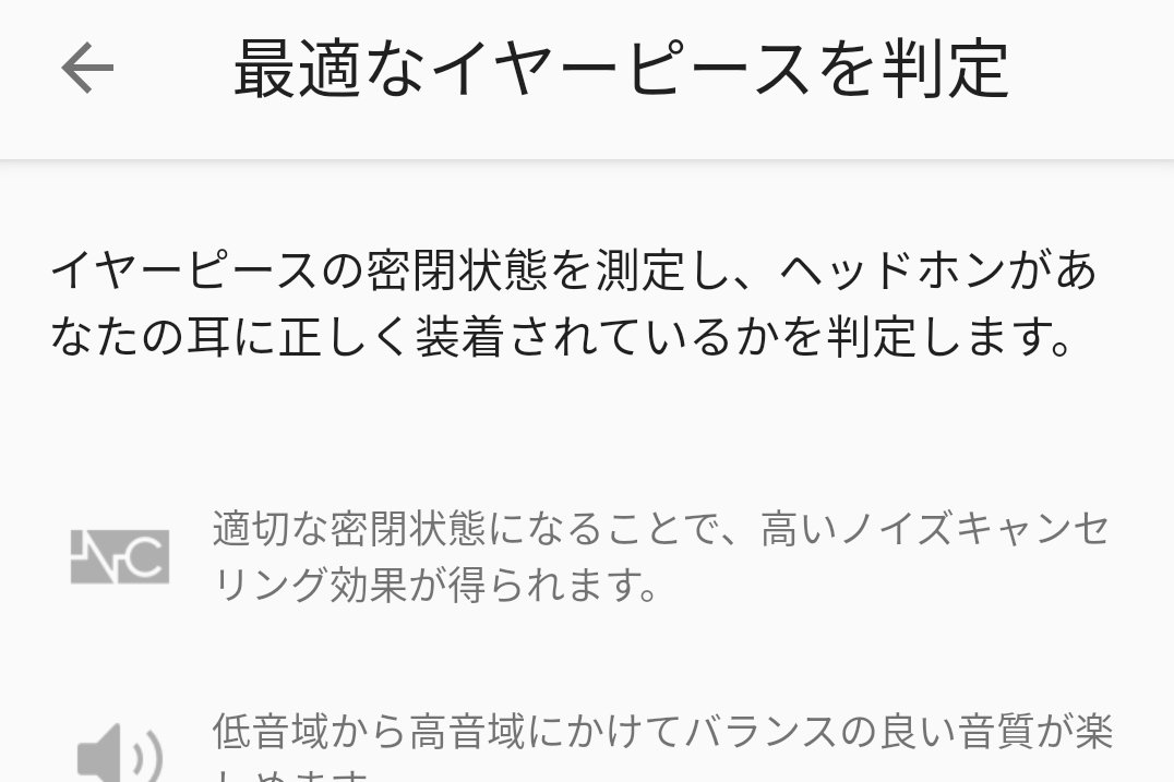 「イヤーピースの密閉状態を測定し、ヘッドホンがあなたの耳に正しく装着されているかを判定します。」というメッセージが表示されました。