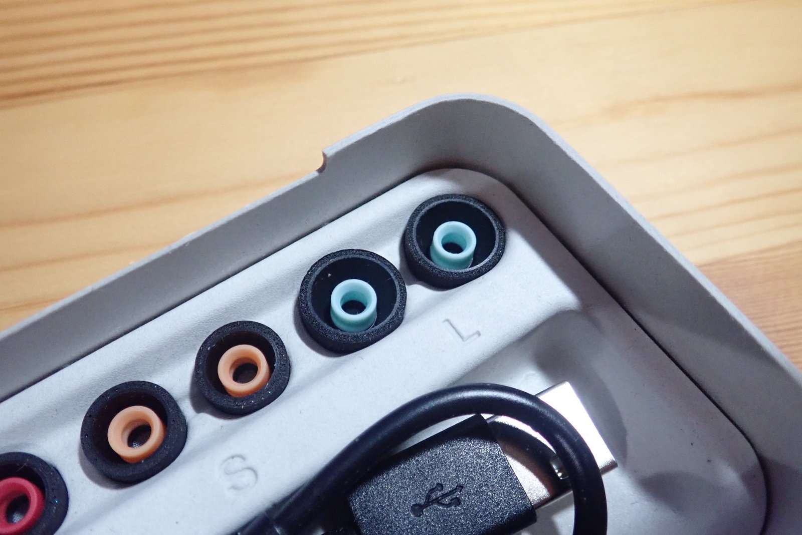 イヤーピースは4サイズ、付属しています。どうやらSiSOの耳穴は大きいらしいので、一番大きなイヤーピースに交換してみます。