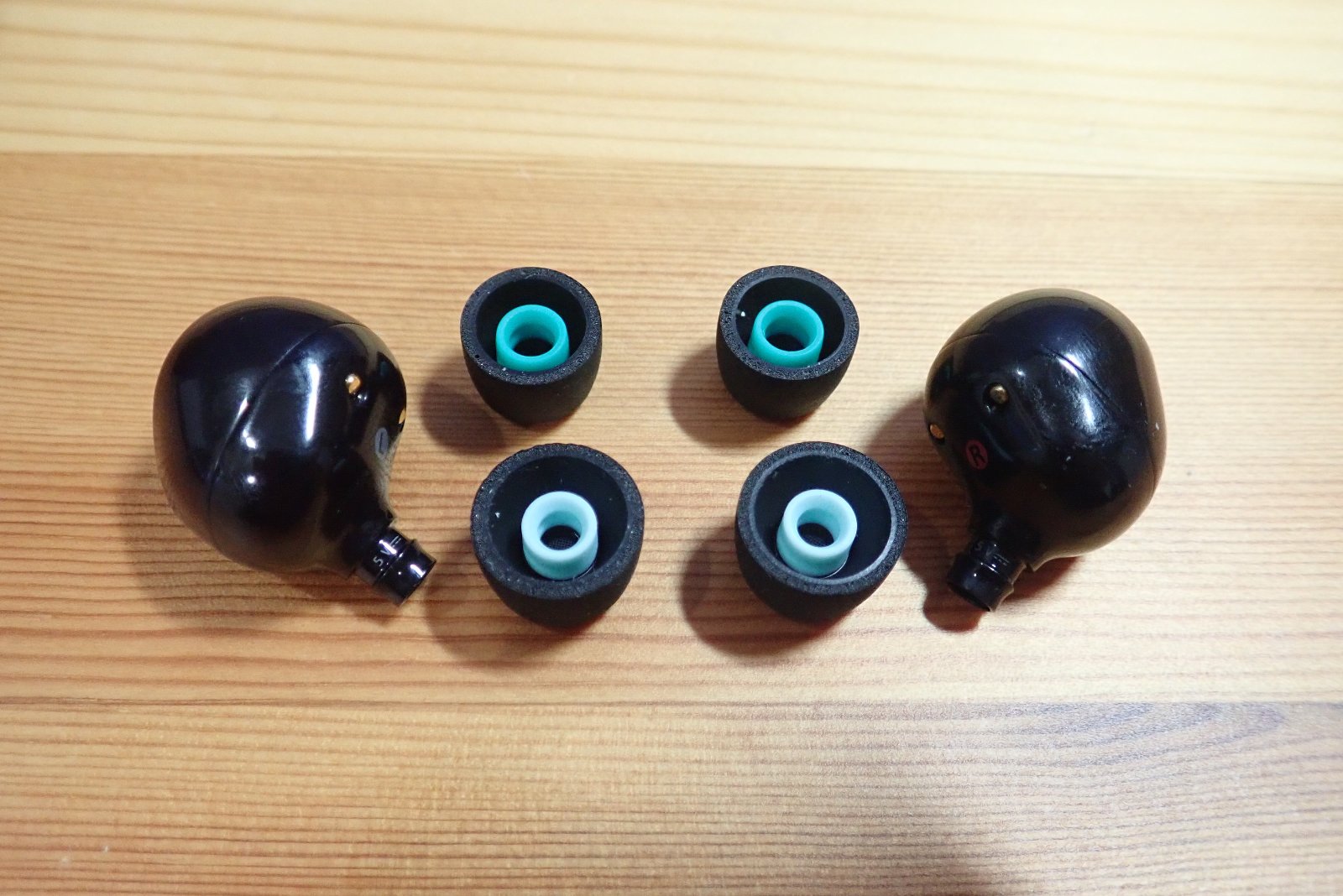 やり方は簡単です。イヤーピース部分を軽くひねりながら、スポッと抜きます。並べてみました。大きいイヤーピース、厚みも結構、ありますね。